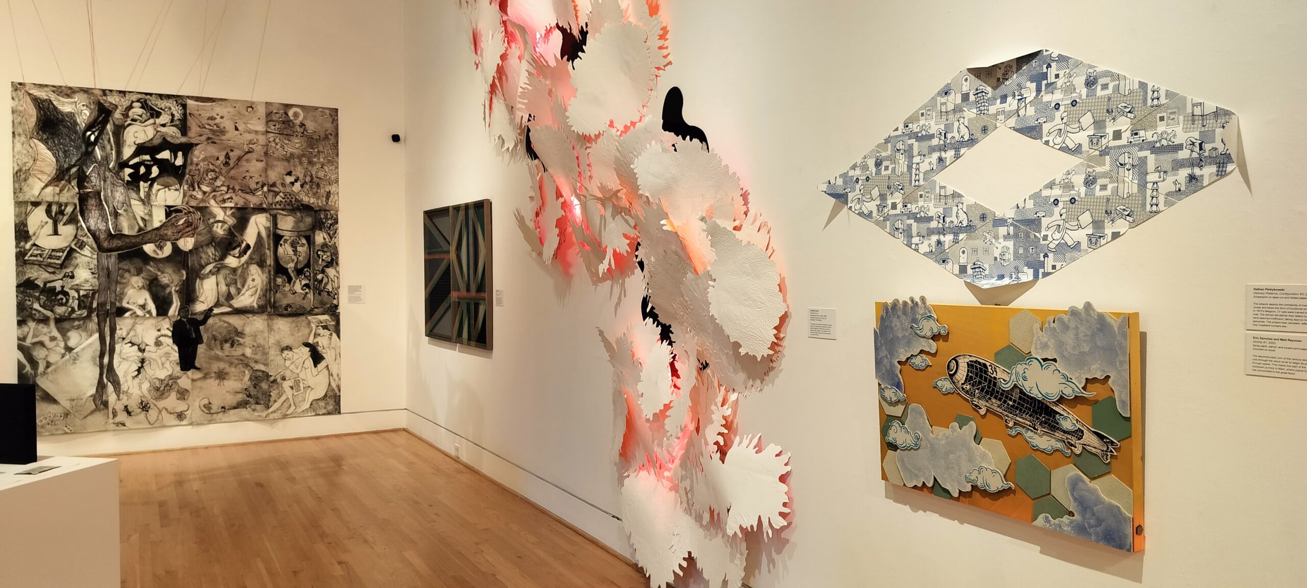 For this exhibition, Expanding the Field; New Ideas in and Beyond Print, artists have been invited to submit work that incorporates any form of hand pulled printmaking, with end results including, but not limited to: large scale print work, innovative/experimental print techniques, modular assemblages, installation, sculptural elements, art book constructions, two-dimensional prints, and more.